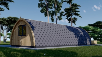 A casa modelo BRETA pode servir a muitos propósitos: pode se tornar um quarto de hóspedes exclusivo, uma cápsula de acampamento no seu quintal ou até mesmo ser parte de um negócio de glamping de sucesso. A forma arredondada da casa oferece uma aparência original e marcante. Possibilidade de escolher entre várias opções de tamanho para encontrar a combinação perfeita. Um terraço compacto: o lugar perfeito para passar momentos tranquilos numa espreguiçadeira. Uma área comum com 19m² de espaço para cozinha e sala, e um quarto separado para uma boa noite de sono. Possui casa de banho independente para maior conforto. Esta estrutura única em madeira de coníferas natural irá inspirá-lo a passar mais tempo com a sua família relaxando na sua espaçosa sala de estar ou no terraço exterior. Obviamente, montar o seu próprio negócio de glamping é outra ótima opção, considerando o tamanho e a disposição confortáveis desse modelo. Seja qual for o caminho que escolher, a BRETA irá servi-lo por anos e o seu quintal brilhará com uma nova luz.