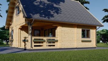 A casa modelo DORIS tem o telhado de duas águas e a simetria da DORIS realçam a beleza da arquitetura tradicional. Inúmeras janelas que atraem luz natural e ar fresco. Um alpendre que também pode ser usado como local de descanso e que pode decorar como desejar. O primeiro andar oferece um espaço amplo para que se possa movimentar livremente: a cozinha aberta é um elemento arquitetónico moderno e prático. O loft possui dois quartos amplos com espaço para escrivaninha, armário e muito mais! A DORIS é uma casa de madeira que vai estimular a sua criatividade e ajudar a realizar o seu sonho de ter uma linda casa de madeira para toda a sua família. Explore o design exterior elegante e veja o interior: a disposição confortável pode inspirá-lo para começar a visualizar a sua vida mais perto da natureza, sob o clássico telhado de duas águas. A DORIS oferece uma garantia de 10 anos, embora dure muito mais se a mantiver adequadamente. Prepare-se para viver de uma forma nova e muito mais feliz com a sua nova (e não tão humilde) moradia!.